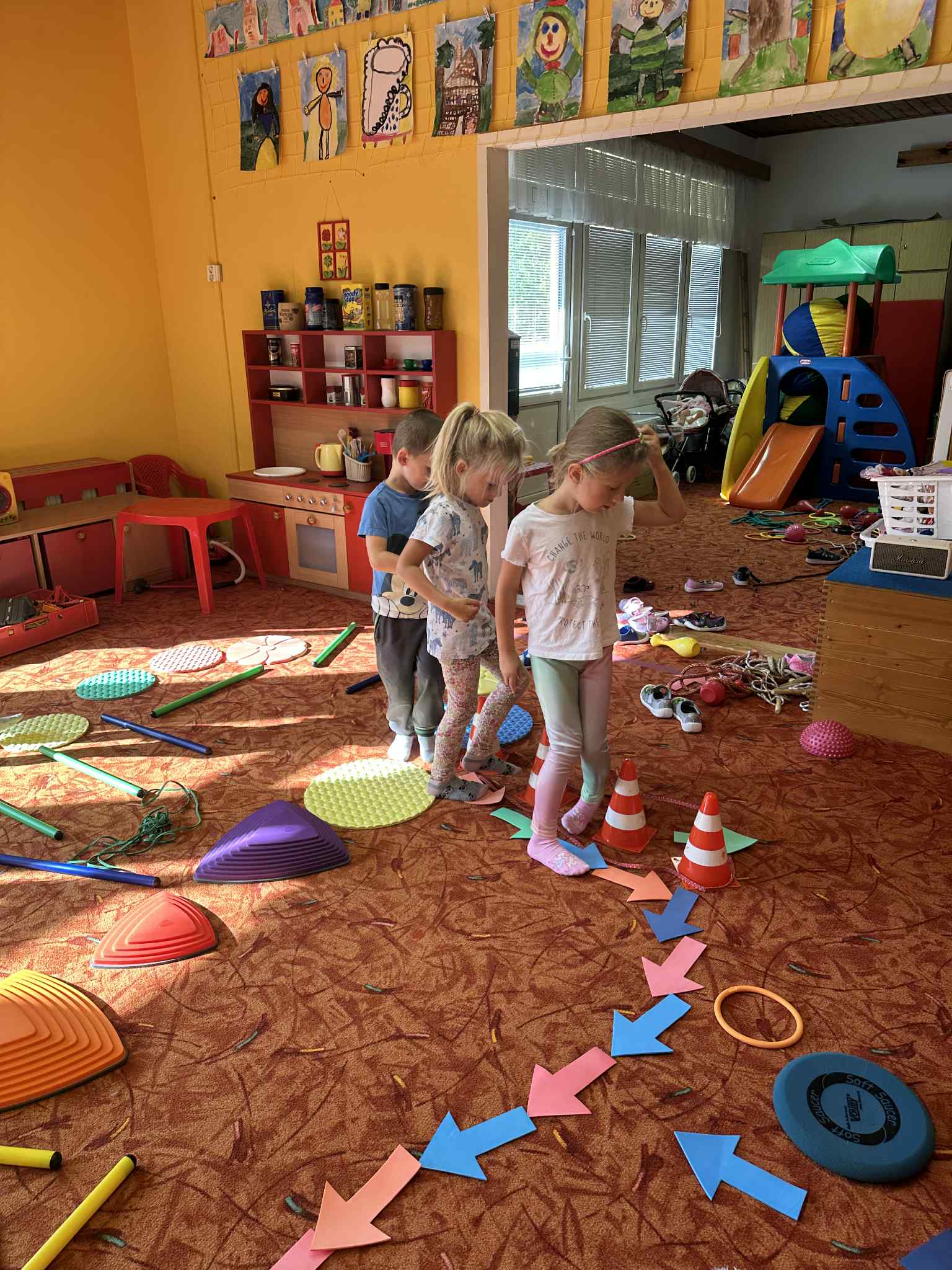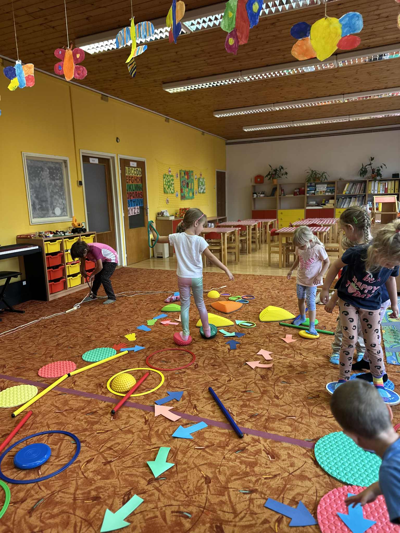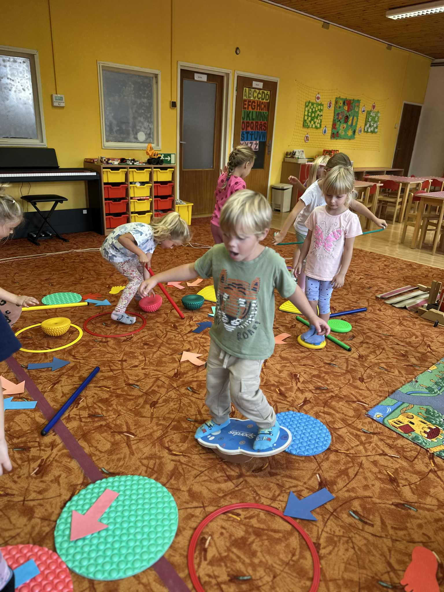 Tvoření překážkové dráhy Publikováno 12.09.2025 | Autor: Anna Vašinová Děti měly za úkol vytvořit vlastní překážkovou dráhu. Povedlo se jim to na 1!
