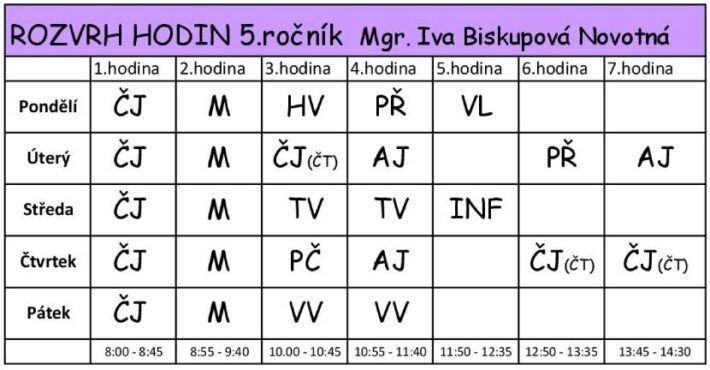 učitelka ZŠ, třídní učitelka 5. ročníku